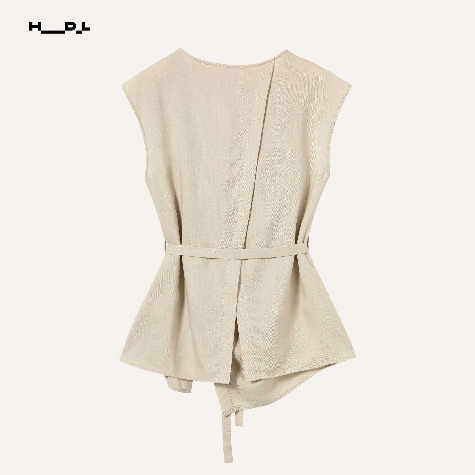 ウエストリボンでメリハリをプラスし、アシンメトリーボタンが洗練された印象に。パンツはウエストゴム仕様で、着心地も抜群です。