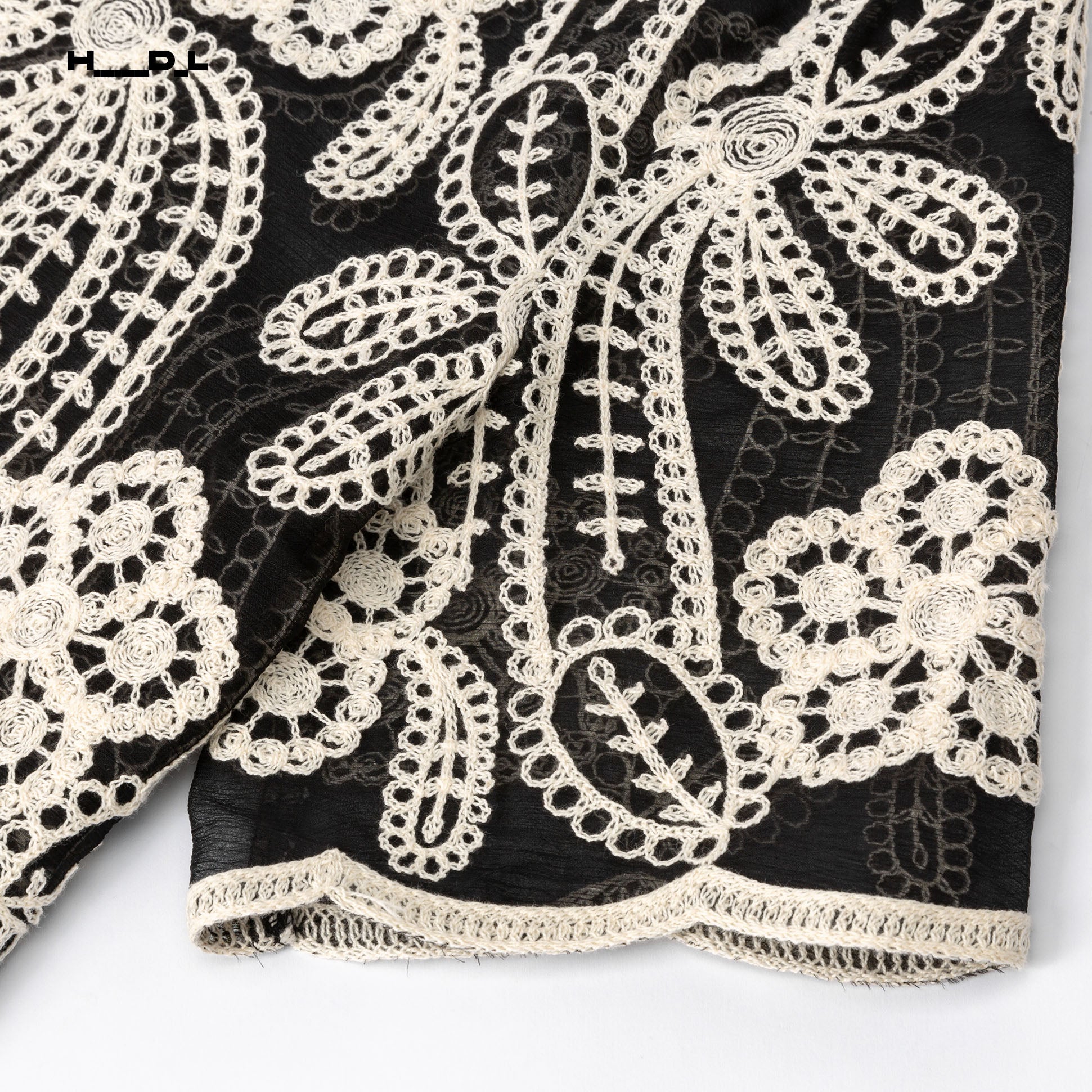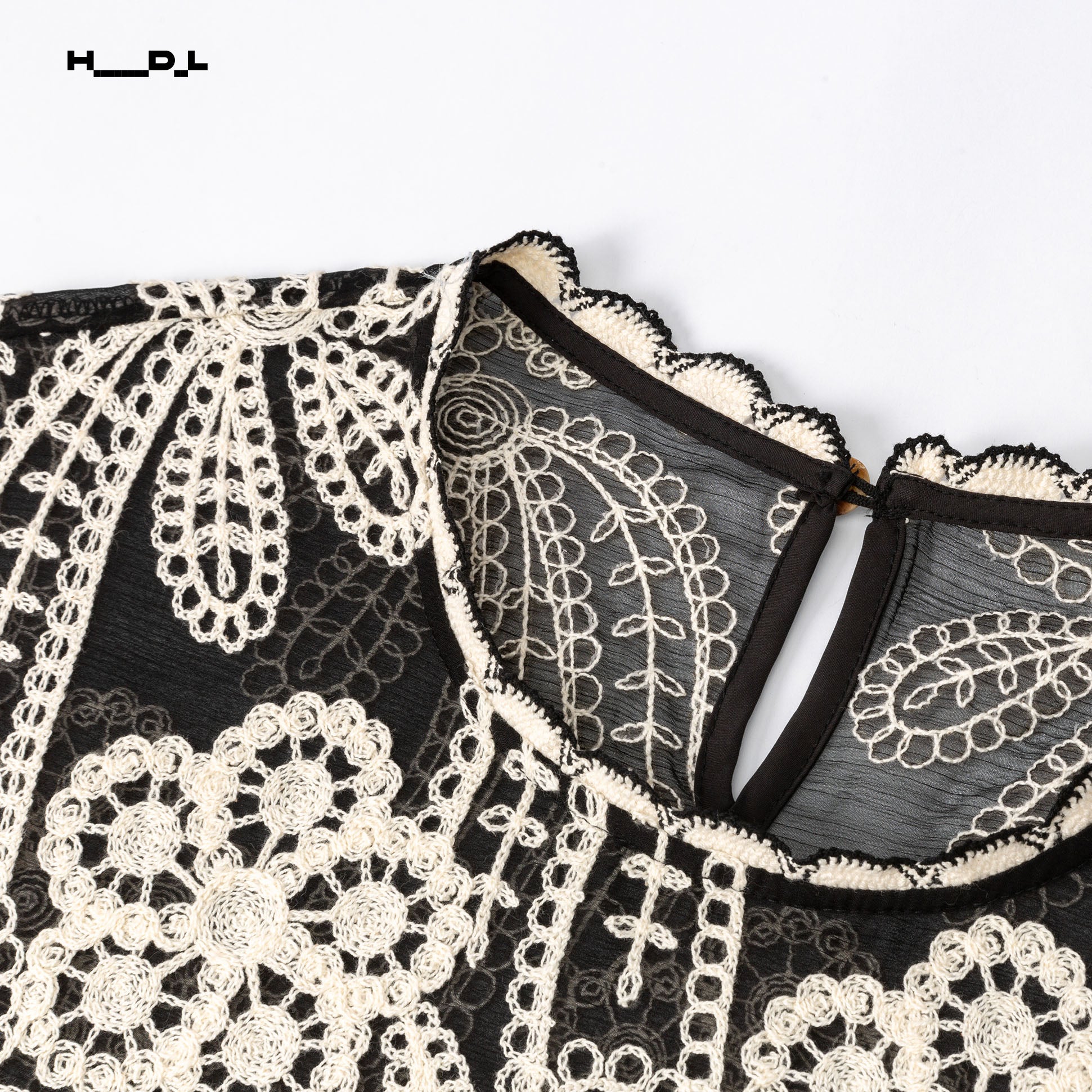 繊細な刺繍がクラシカルな雰囲気を漂わせつつ、シアー感で軽やかさも演出。
