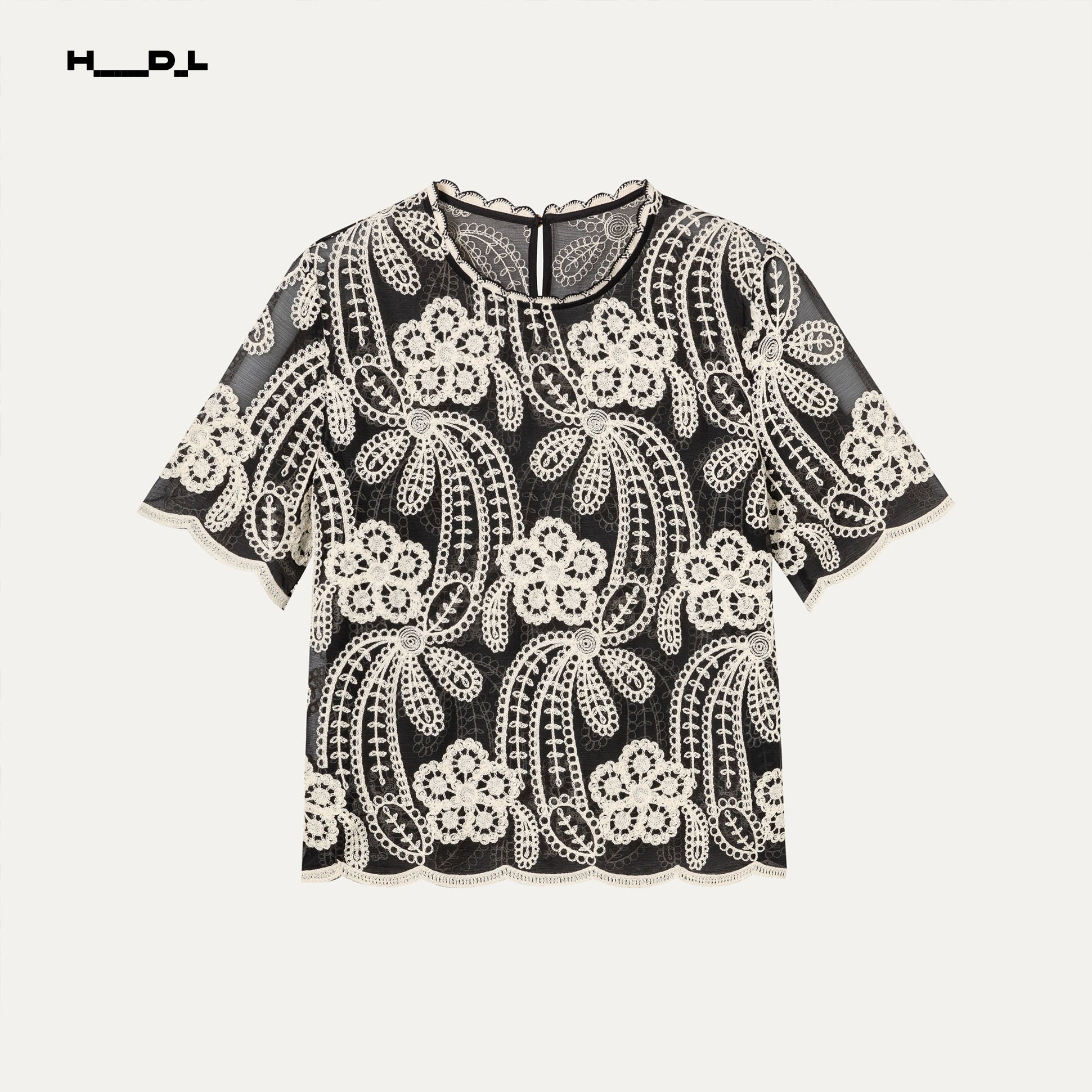 立体的なフラワーレースを全面に施した、華やかなショートスリーブトップス。